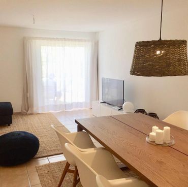One of our holiday apartment rentals. Ground floor apartment that gets the sunshine all day even in the winter months because of its south facing position . The lounge boasts a terrace with decking you get the morning sunshine. There Are two full bathrooms , and a fully equipped kitchen . Terrace with BBQ to enjoy . Short term apartment rentals and long term on request. The apartment layout has two defined areas for sleeping and living . The bathrooms are both well equipped , the large lounge has patio doors to give it a very spacious feel , as well as fully fitted kitchen, TV and WIFI all waiting for you . Large internal space to sleep up to 4 people.